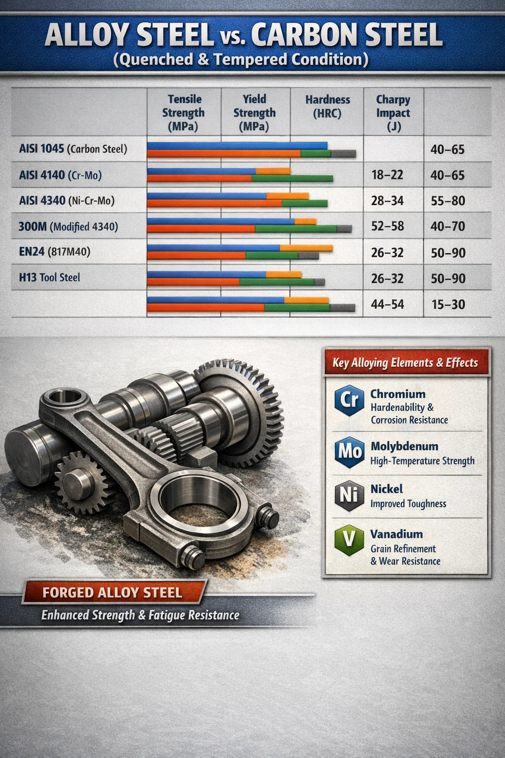Klíčové třídy výkovků z legované oceli a jejich pevnostní profily