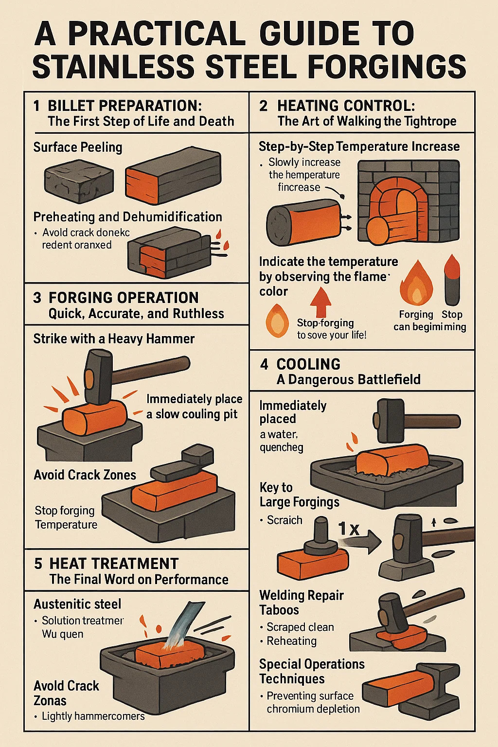 Zastavte kování teploty: Austenitická ocel ≥ 850 ° C, Martensitická ocel ≥ 950 ° C (pod touto teplotou se nevyhnutelně praskne).